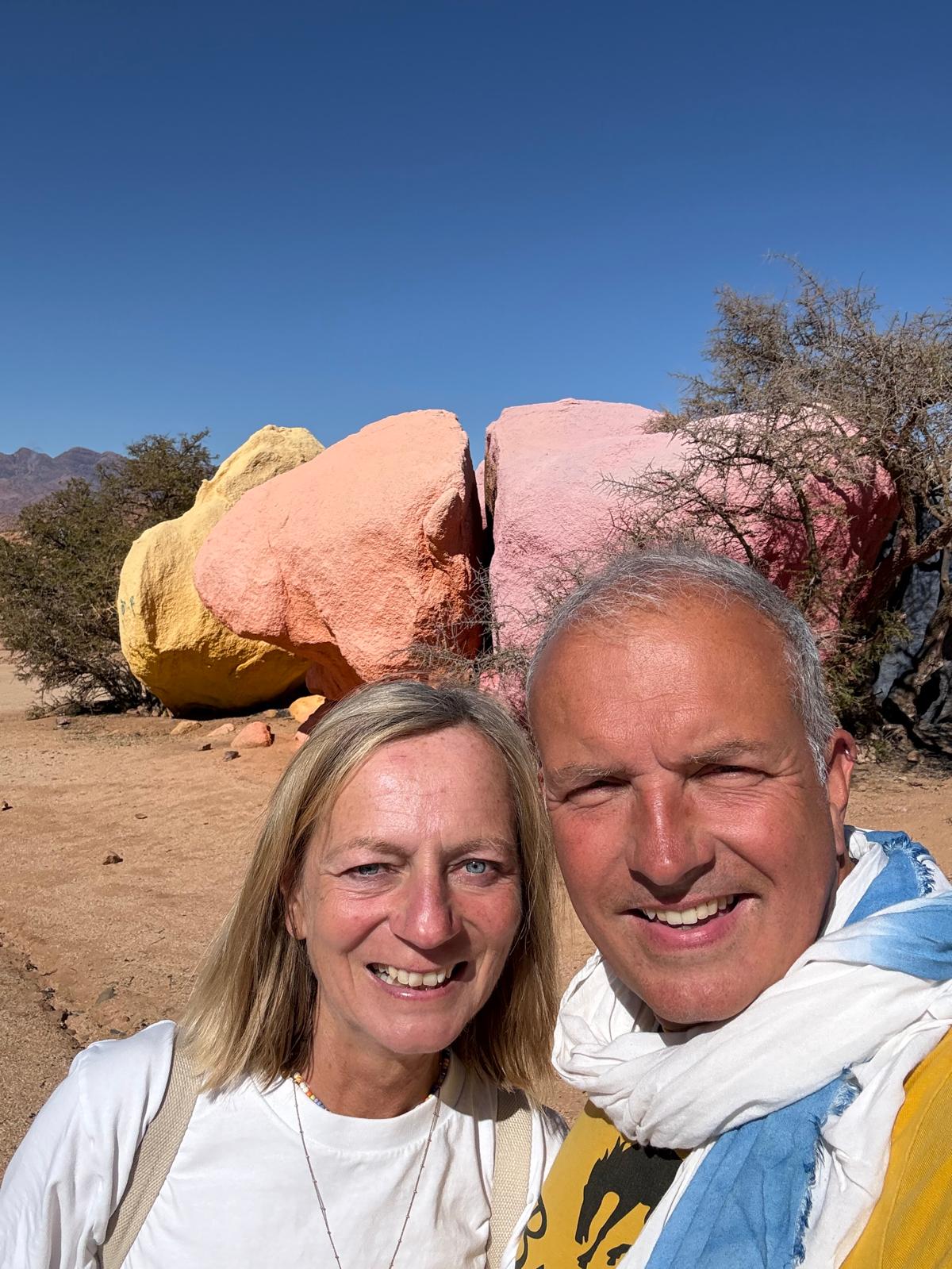 Ein Highlight war unsere große Wanderung zu den berühmten blauen Steinen: ein Werk des belgischen Künstlers Jean Verame aus dem Jahr 1984. Mitten in der kargen Landschaft liegen diese intensiv blau bemalten Felsbrocken und wirken fast surreal, wie aus einer anderen Welt.