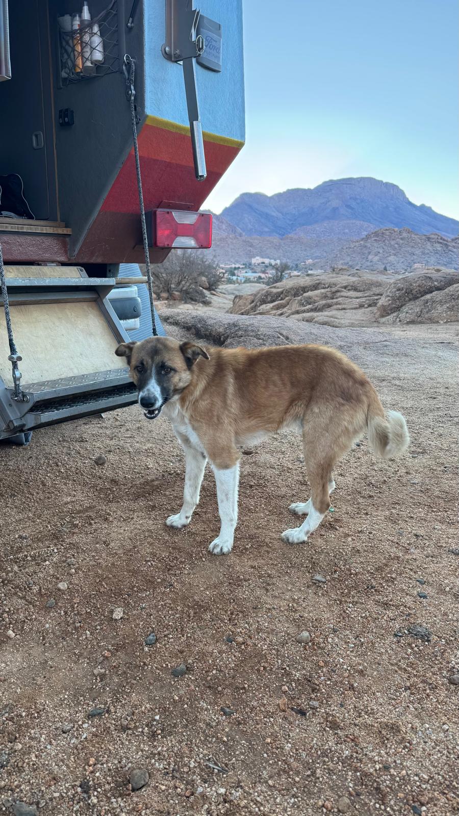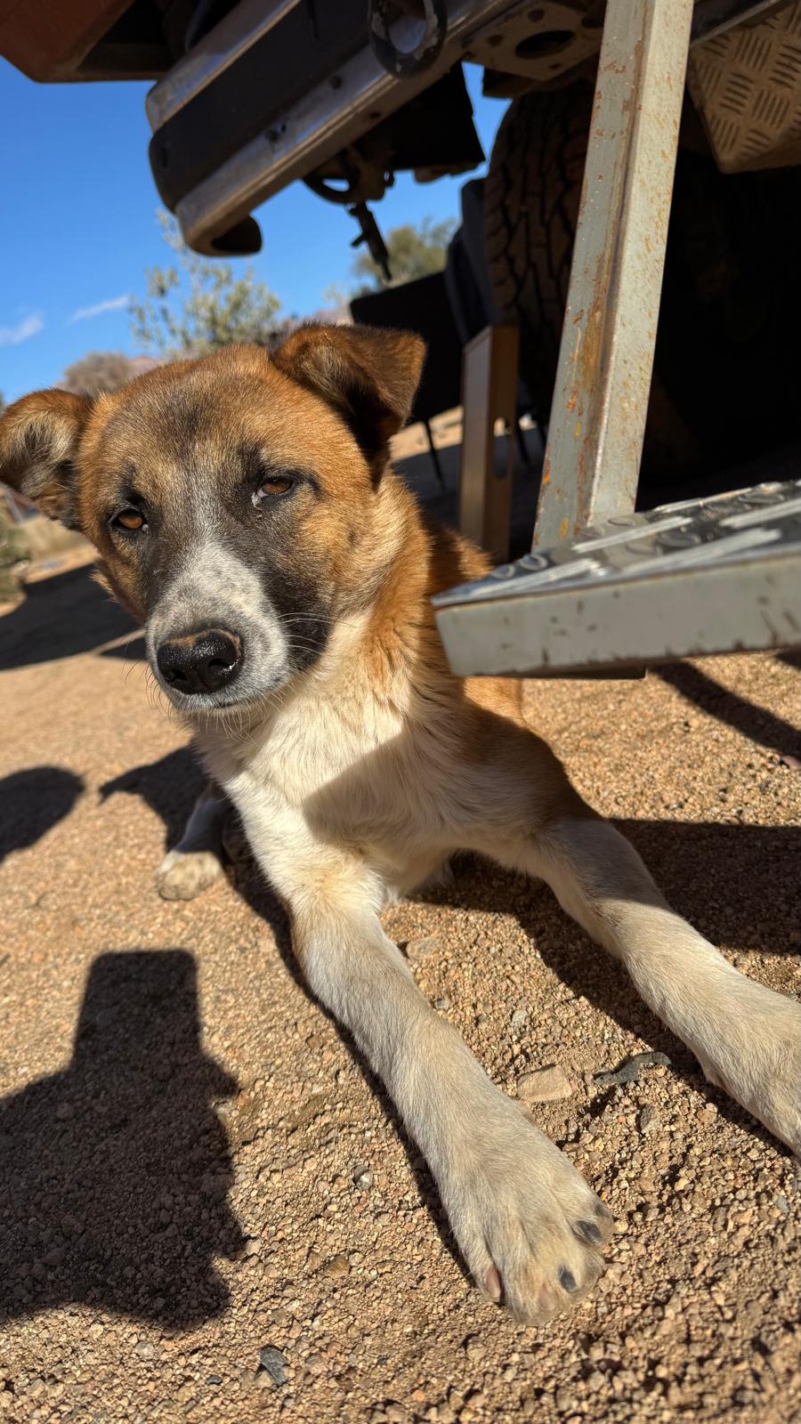 Am zweiten Morgen tauchte er auf: Desert, wie wir ihn nannten. Ein etwa zweijähriger Streuner, offen, ruhig, aufmerksam. Jürgen hatte am Abend zuvor noch gesagt, dass uns doch endlich mal ein Hund finden müsste, und am nächsten Morgen stand Desert vor ihm.