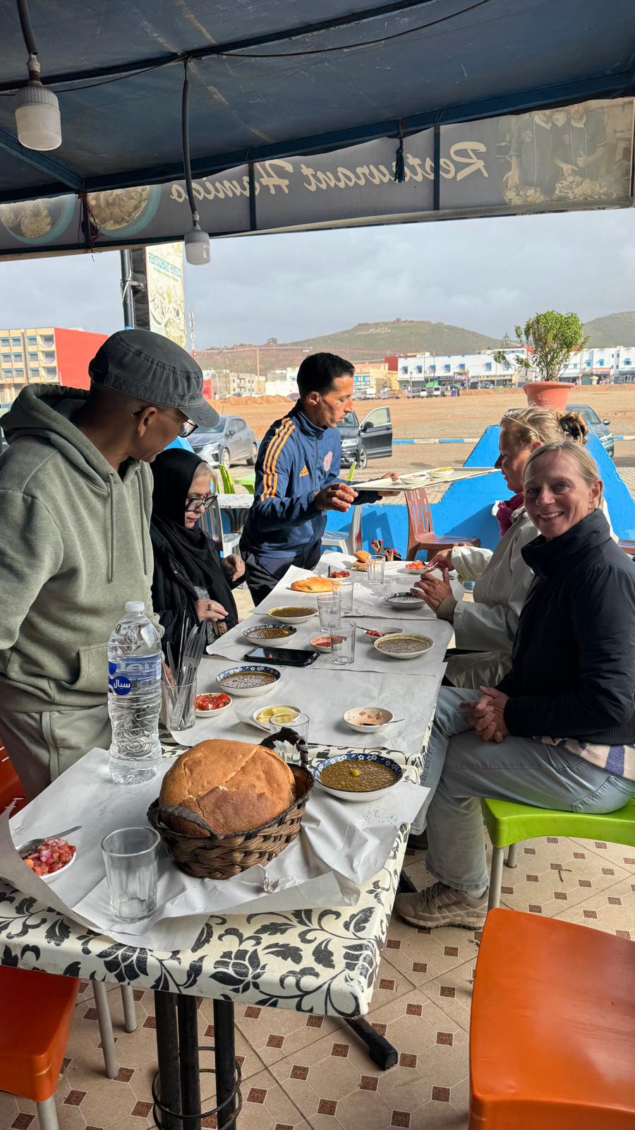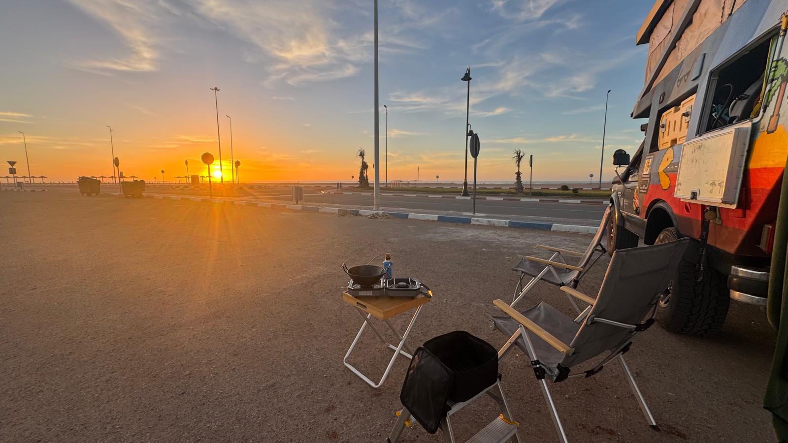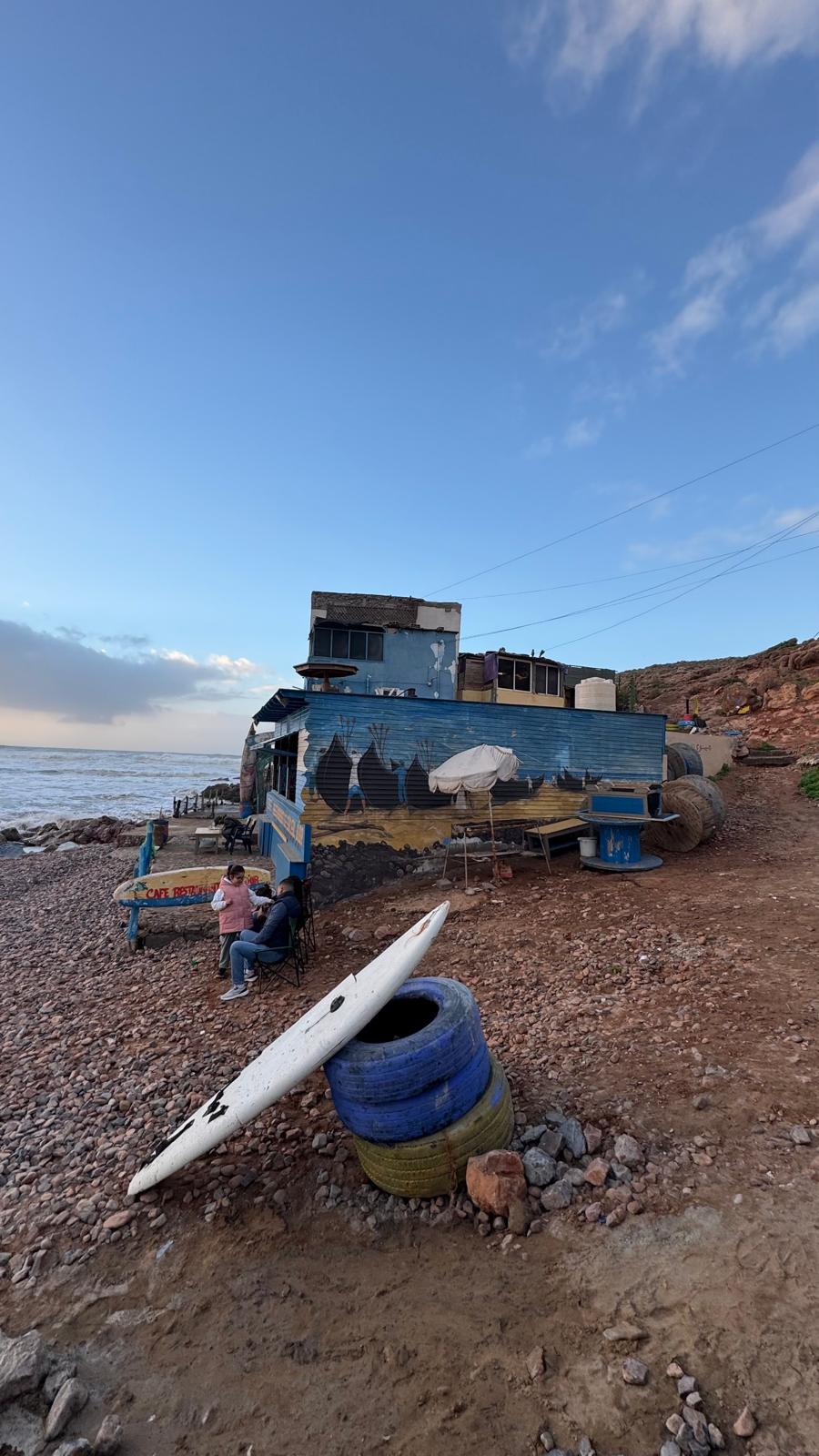 Zwischendurch Meer, Gespräche, gemeinsames Essen. Diese Art von Alltag fühlt sich unterwegs plötzlich wie Luxus an. Einmal waren wir am Aftas Beach: eine kleine Bucht mit ein paar schönen kleinen Cafés. Einer der Café-Besitzer erzählte uns, dass das kleine Dörfchen, wie viele andere Küstenörtchen, vom Abriss bedroht sind. Schaut hierzu mal in in unser 🎥YouTube-Short.
