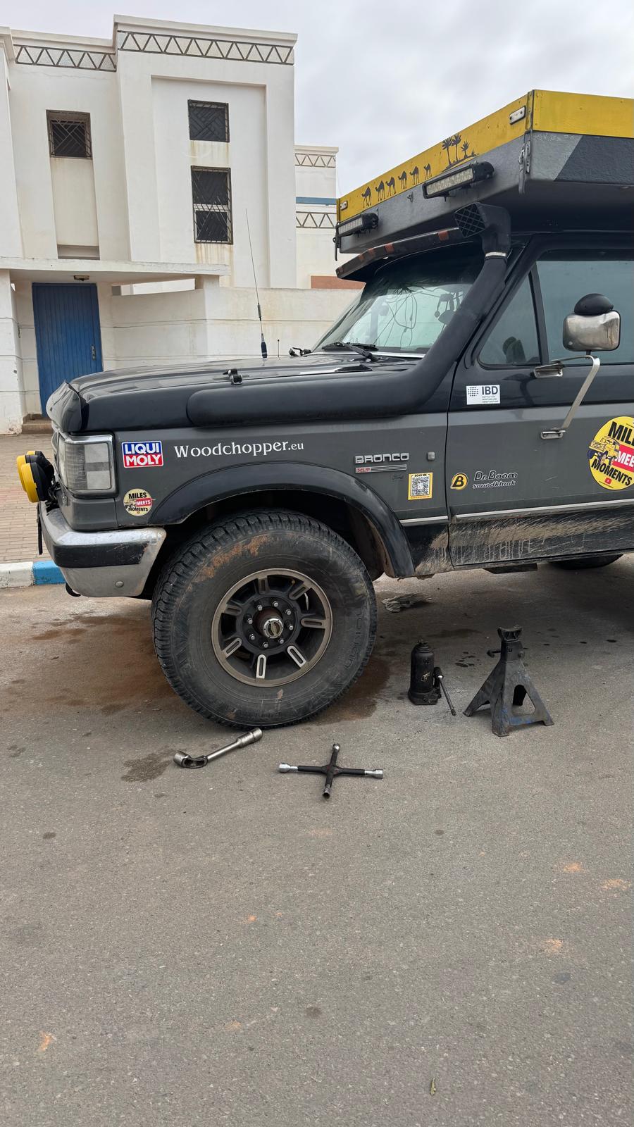 In Tan-Tan Plage dann der nächste Dämpfer: Die Bremsen machten Geräusche. Werkstatt. Warten. Ersatzteile. Neue Erkenntnisse. Das ausgerechnet hier, denn wir mochten diesen Ort nicht besonders. In Tafraout oder Zagora hätte es uns nichts ausgemacht, länger zu bleiben, bis der Bronco wieder fit ist, aber hier mußte es nicht sein.